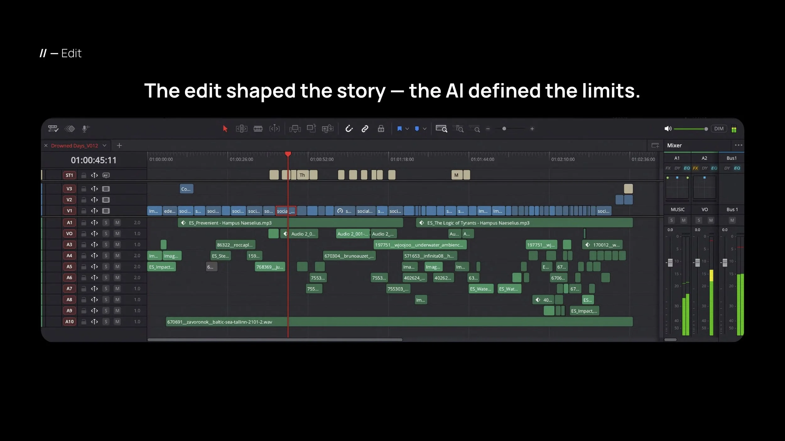 AI can generate, but we make it cinematic. We bring expert editing, sound design, and color grading to refine AI-generated or hybrid content into finished, production-ready pieces.